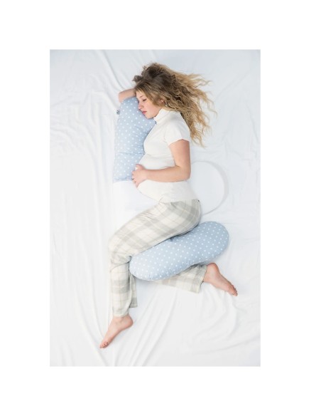 CARATTERISTICHE TECNICHE Fantasia: POIS Colori: Rosa, Azzurro, Grigio, Tortora Composizione: Imbottitura: 100% poliestere Fodera sfilabile: tessuto 100% cotone Misure: 160 x 55 dim.
