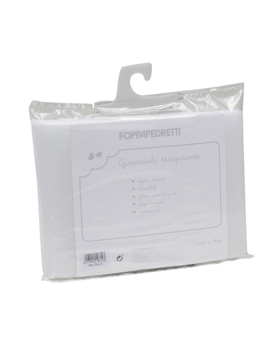 Il guanciale traspirante antiacaro di Foppapedretti per culla è realizzato in fibra anallergica e può essere utilizzato con tutte le culle Dream&Swing, MyBebè, iNanna, iCrib Foppapedretti e Culla Evo , Mamma&me di Mammamia Collection.