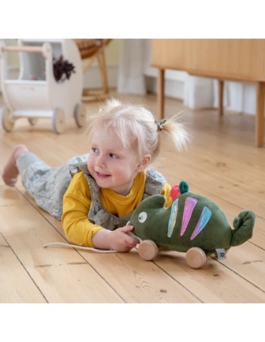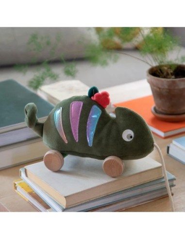 Divertente giocattolo da trainare a quattro ruote a forma di Carley il camaleonte, che ama vivere avventure. Carley è stata disegnata in morbido velluto e ha bellissime strisce multicolori su entrambi i lati.