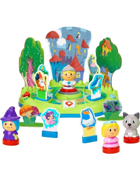 Le prime tre modalità di gioco prevedono l'utilizzo della base elettronica: grazie a più di 90 minuti di contenuti, i bambini avranno la possibilità di divertirsi ascoltando storie divertenti e arricchire le proprie competenze linguistiche. Grazie alla sua funzione di autocorrezione, il giocattolo riconosce se il personaggio inserito è quello corretto, dando al bambino un feedback immediato sulla sua azione. I contenuti sono disponibili in 4 lingue.