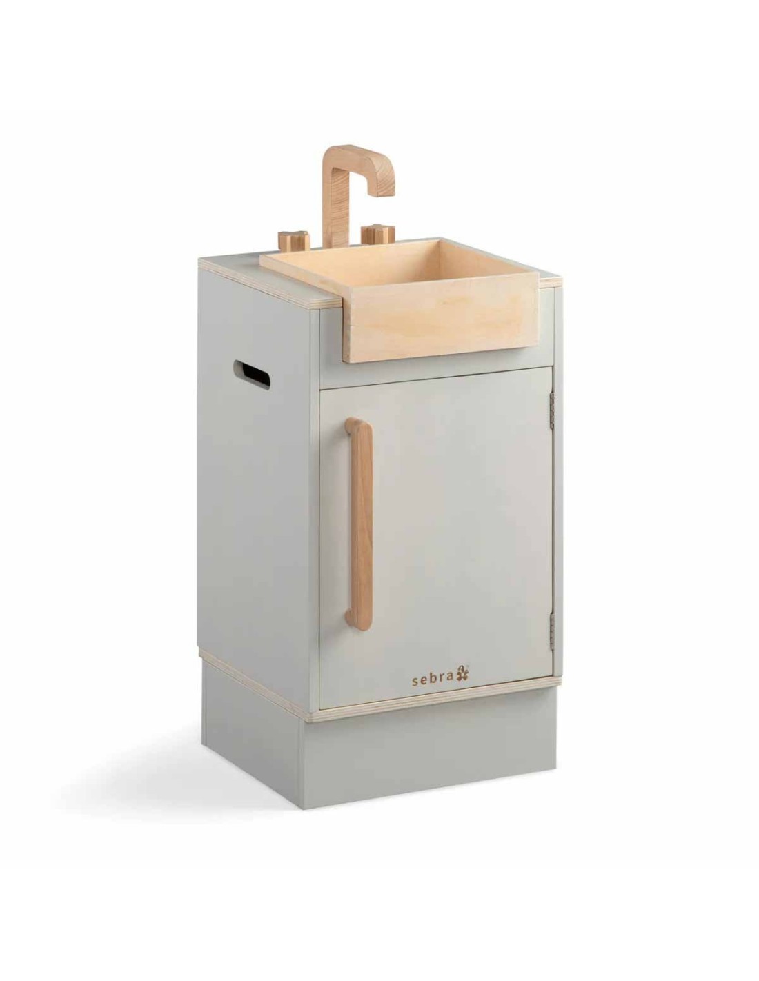 Robusto lavello giocattolo in legno per i bambini che amano imitare gli adulti e giocare in cucina.