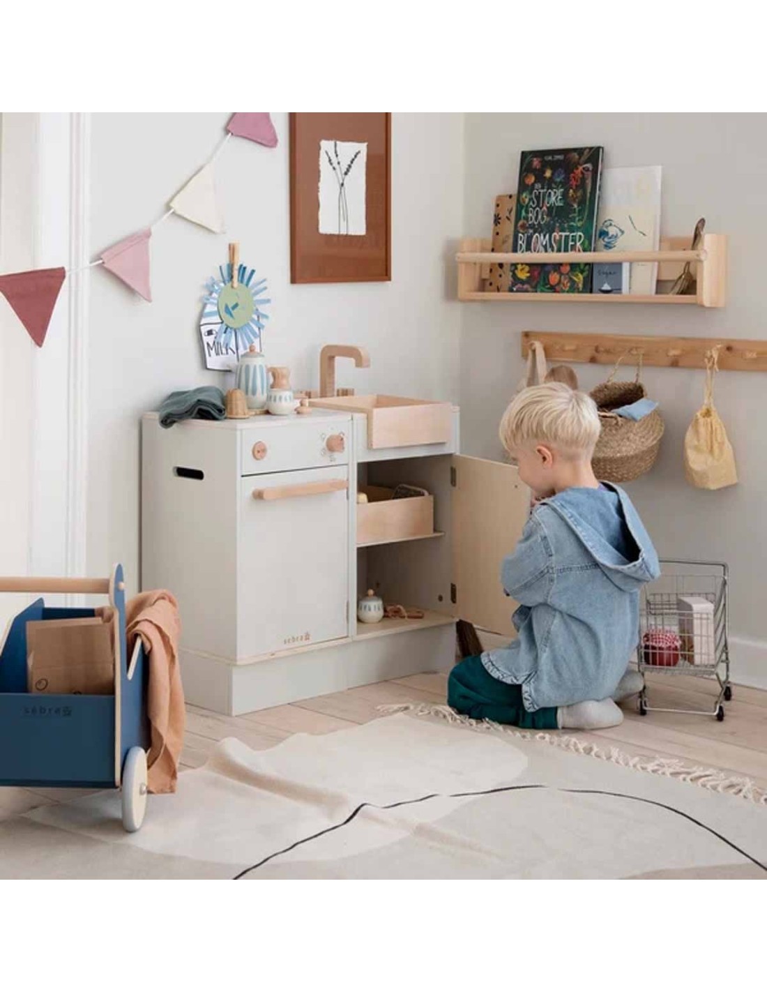 Le pratiche maniglie ai lati del mobile lavello lo rendono facile da spostare e da combinare con altri moduli della gamma Sebra KIDchen. In questo modo si ottiene una cucina giocattolo in legno flessibile che può essere ampliata per adattarsi a qualsiasi dimensione della cameretta.
