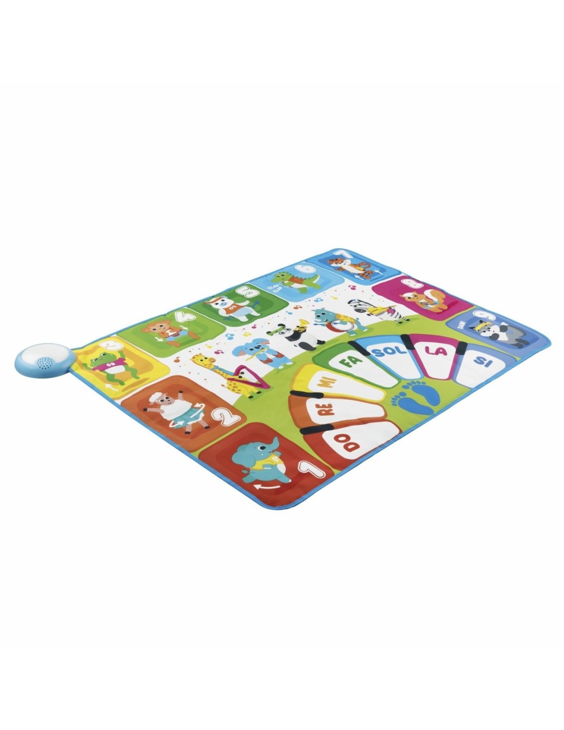 Gioca liberamente con il tappeto da gioco per scoprire le note musicali, i suoni degli animali, gli strumenti e i colori.