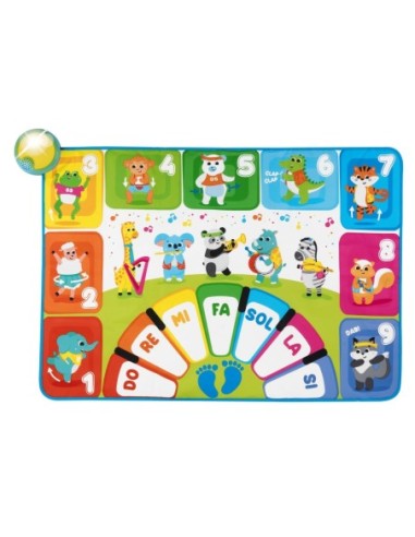 Il tappeto gioco musicale insegna ai più piccoli tante informazioni sugli strumenti musicali e sulle note, offrendo anche la possibilità di muoversi imitando i movimenti di danza degli animali.