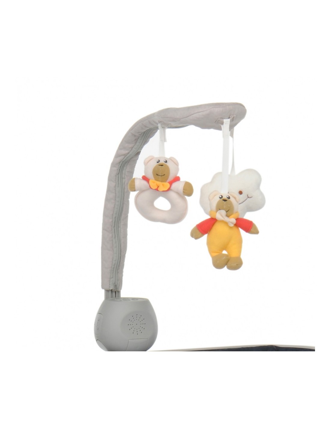 Giostrina, progettata per intrattenere il piccolo con 3 peluche, 5 melodie musicali e 5 suoni della natura con volume regolabile. La barra porta giochi è rivestita con morbido tessuto e ha tre inclinazioni. Funziona con 2 batterie AA 1.5V non incluse.