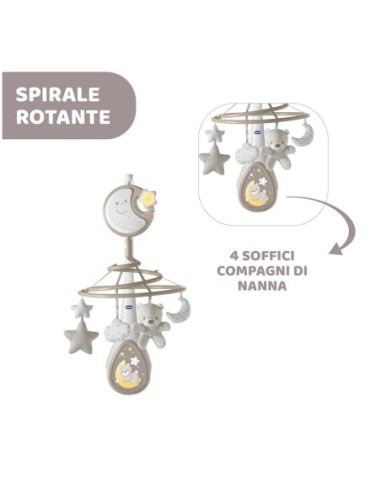 La Giostrina Next2Dreams è dotata di una luce notturna soffusa per creare un'atmosfera sognante nella stanza del piccolo