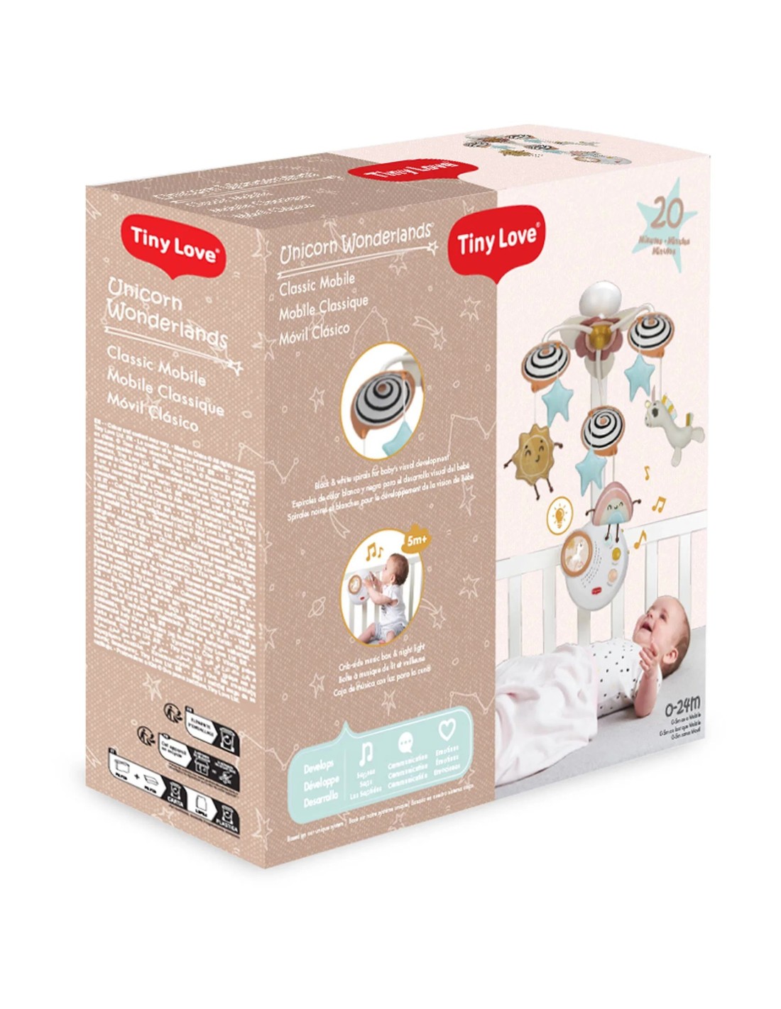 Aggiungete un tocco di magia alla cameretta del vostro bambino con il Tiny Love Classic Mobile - Unicorn Wonderlands e sostenete il suo sviluppo in modo amorevole e creativo!