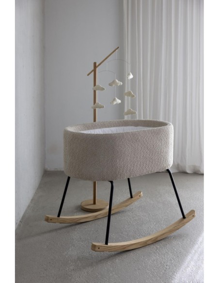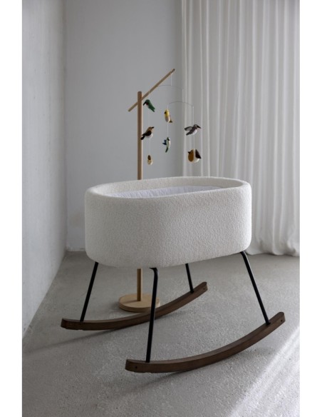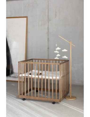 Questo incantevole supporto in legno consente di agganciare facilmente una giostrina (venduta separatamente), portando il bambino in un viaggio pieno di sogni e immaginazione.
