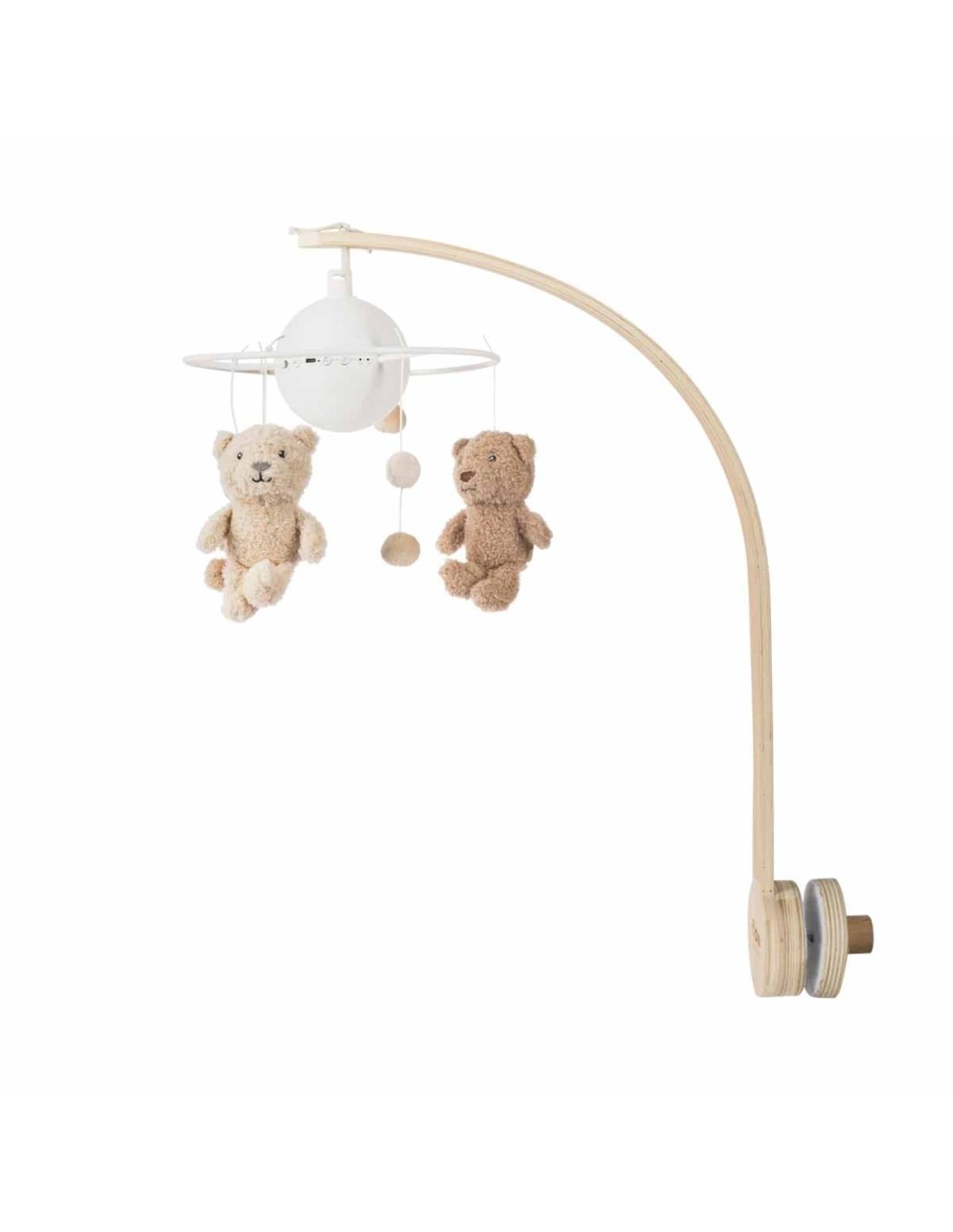 La giostrina Lou è la nuova giostrina per bambini di Flow Amsterdam con un elegante fiocco in legno.