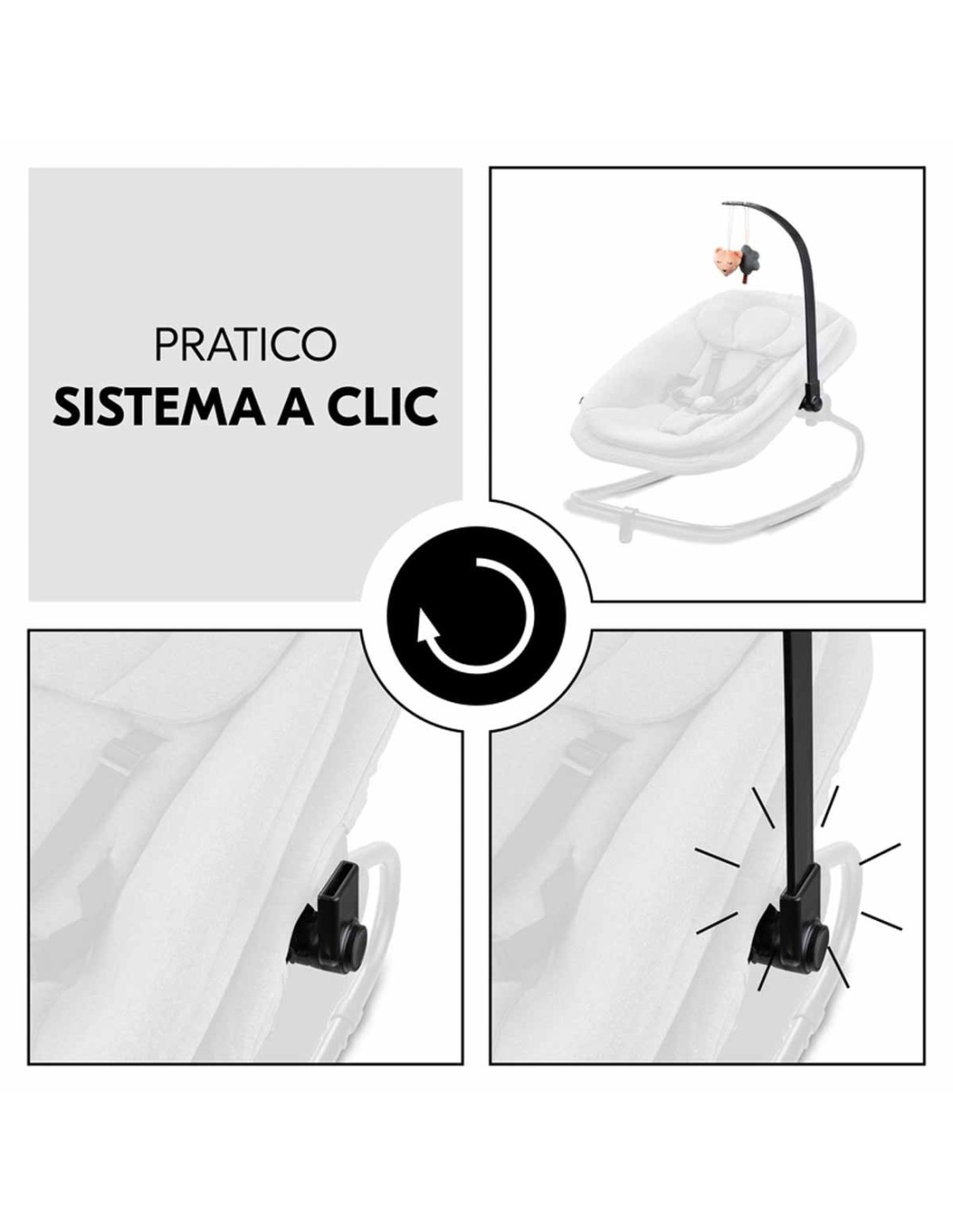 Con l'arco giochi per Highchair Bouncer, il tuo bambino può giocare nel suo ambiente familiare e scoprire il mondo che lo circonda, in sicurezza fin dalla nascita.