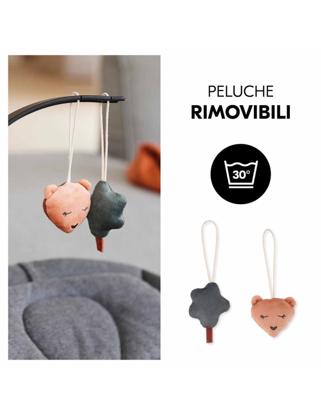- Particolarità: Animaletti in peluche rimovibili