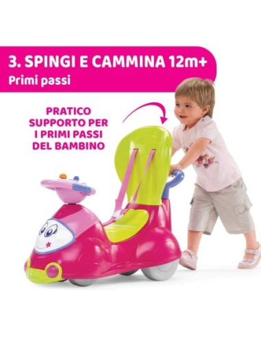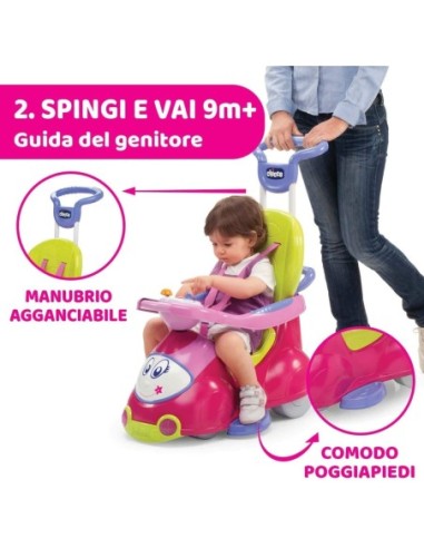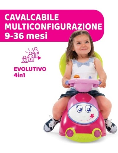 - GIOCO CAVALCABILE 4in1: Chicco Quattro è una macchinina cavalcabile per bambini robusta e sicura, con cinture, comode protezioni per braccia e piedi e un alto schienale, 4 diverse modalità di utilizzo per seguire la crescita del bambino dai 9 mesi ai 3 anni