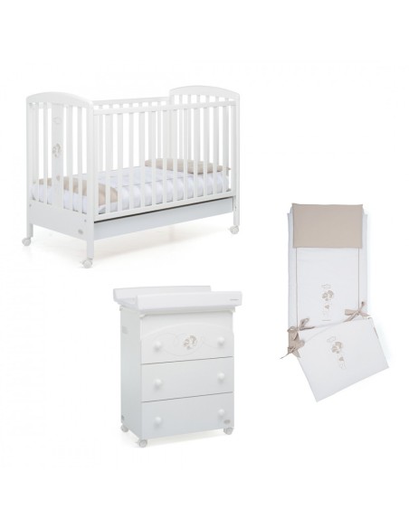 Lettino, bagnetto fasciatoio e completo piumone in coordinato, subito a casa tua.