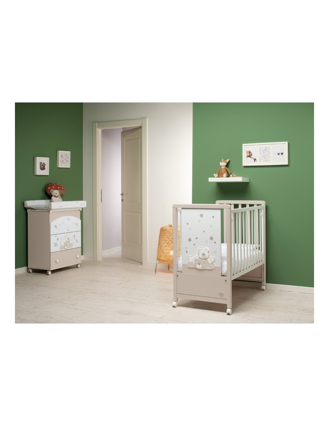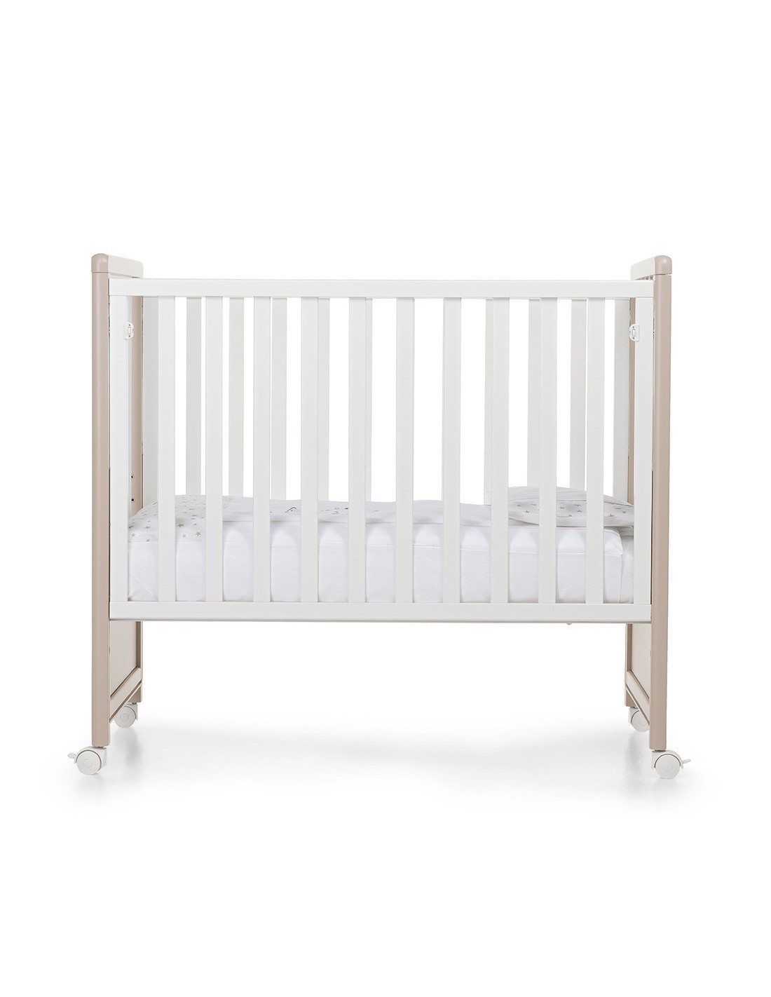 Pikkoletto ha una solida struttura in legno massiccio di faggio, verniciata con colori atossici, e 4 ruote piroettanti (due con freno). Il materasso è incluso.