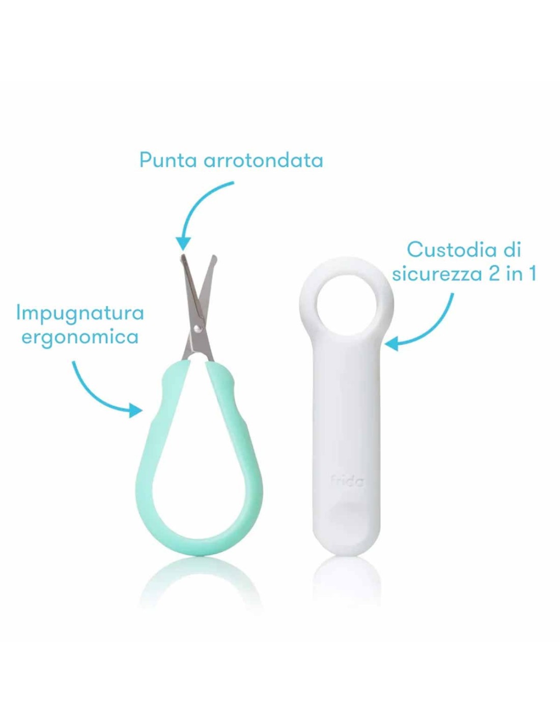 Forbici con punte arrotondate per tagliare in sicurezza le unghie dei bambini.