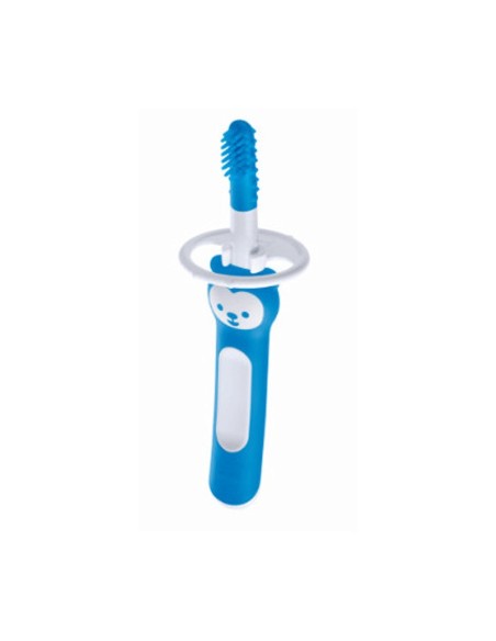 3+ mesi. Facile da maneggiare. Testina con setole morbide e delicate per massaggiare le gengive e pulire i primi dentini. Con anello di sicurezza per mantenere lo spazzolino a distanza di sicurezza dal fondo della bocca del bambino. Impugnatura ergonomica e anti-scivolo. Forma simile a uno spazzolino per preparare alla routine del lavaggio dei denti.
