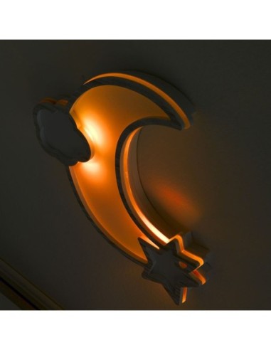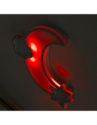 Erbesi Lampada a Muro Moon Wifi con 8 Luci Led è una graziosa e caratteristica decorazione che si illumina al buio! É integrata di luci led e si fissa tramite magneti all'armadio, perfetta da abbinare all'Armadio Moon Erbesi. La Lampada a forma di Luna Erbesi dispone di otto colori (bianco, giallo, arancione, rosso, viola, azzurro, blu e verde) ispirati al principio della cromoterapia, ossia che le varie lunghezze d'onda dei colori corrispondono a precise vibrazioni capaci di influenzare lo stato d'animo. La Lampada a Muro Luna Wifi cambia colore tramite il tuo smartphone: basta scaricare l'apposita app! É disponibile anche la versione con il telecomando.