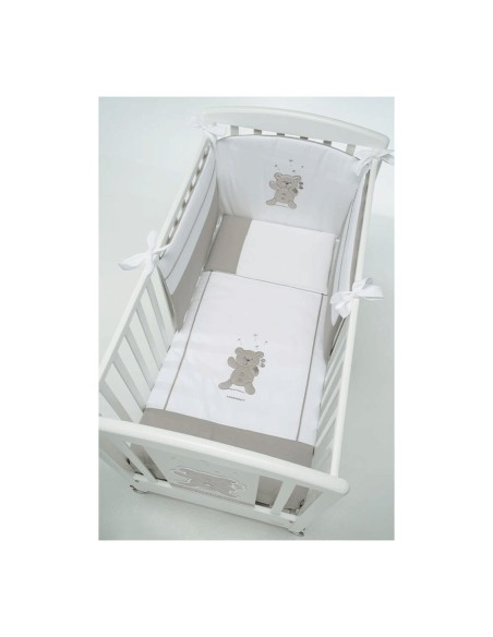 Completo piumone composto da: paracolpi, sacco sfoderabile, imbottitura e federa per cuscino.