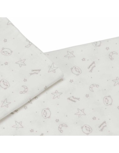Il completo lenzuolo per lettino di Foppapedretti Mammamia Collection è realizzato in mussola 100% cotone Oeko Tex
