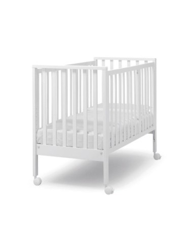 È dotato di 4 ruote piroettanti con freno, rete posizionabile su 9 altezze, barriera di sicurezza per il co-sleeping e una sponda mobile.