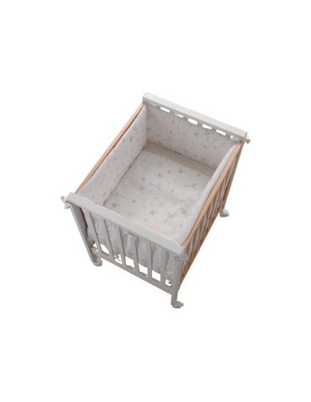 È dotato di 4 ruote piroettanti con freno, rete posizionabile su 9 altezze, barriera di sicurezza per il co-sleeping e una sponda mobile. Comprende un materasso con cover in Aloe sfoderabile di misura 76 x 60 x 8 cm adattabile al formato culla.