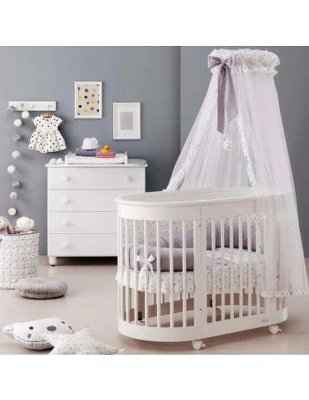 Co-Sleeping: rimuovendo la sponda mobile ed utilizzando le apposite cinghiettine, è possibile affiancare il lettino al letto di mamma e papà.