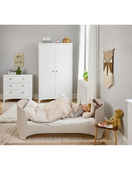 Quando il bambino supera la culla, il kit junior per il lettino Leander Classic™ baby-junior, dal design intelligente, consente al bambino di continuare a dormire nell'ambiente familiare e sicuro del lettino.