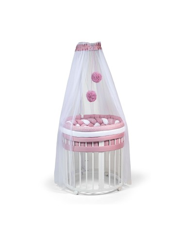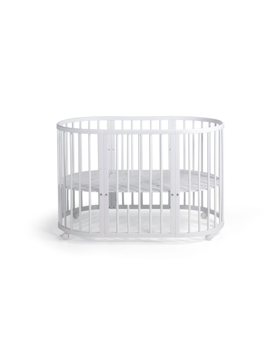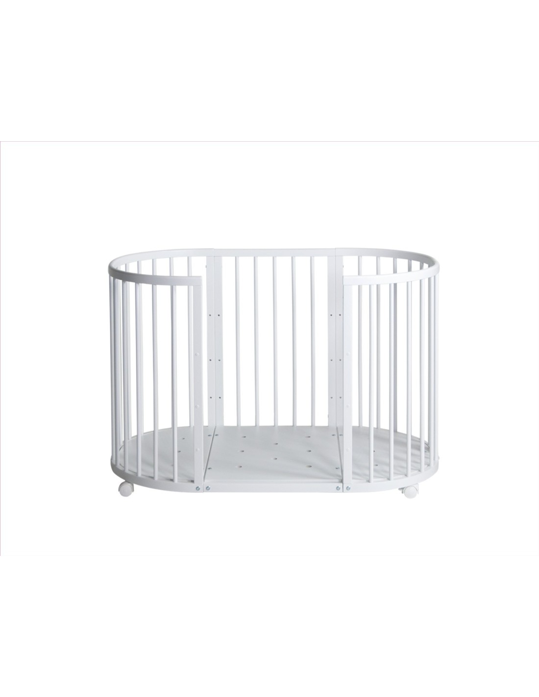 Lettino evolutivo che può essere montato come culla tonda “mini”, per un utilizzo durante i primi mesi di vita del bambino. Può essere poi trasformato in lettino ovale, di misura standard, con l’aggiunta di due pannelli laterali in dotazione, ed inoltre, può essere utilizzato come box, lettino montessoriano o comode poltroncine.