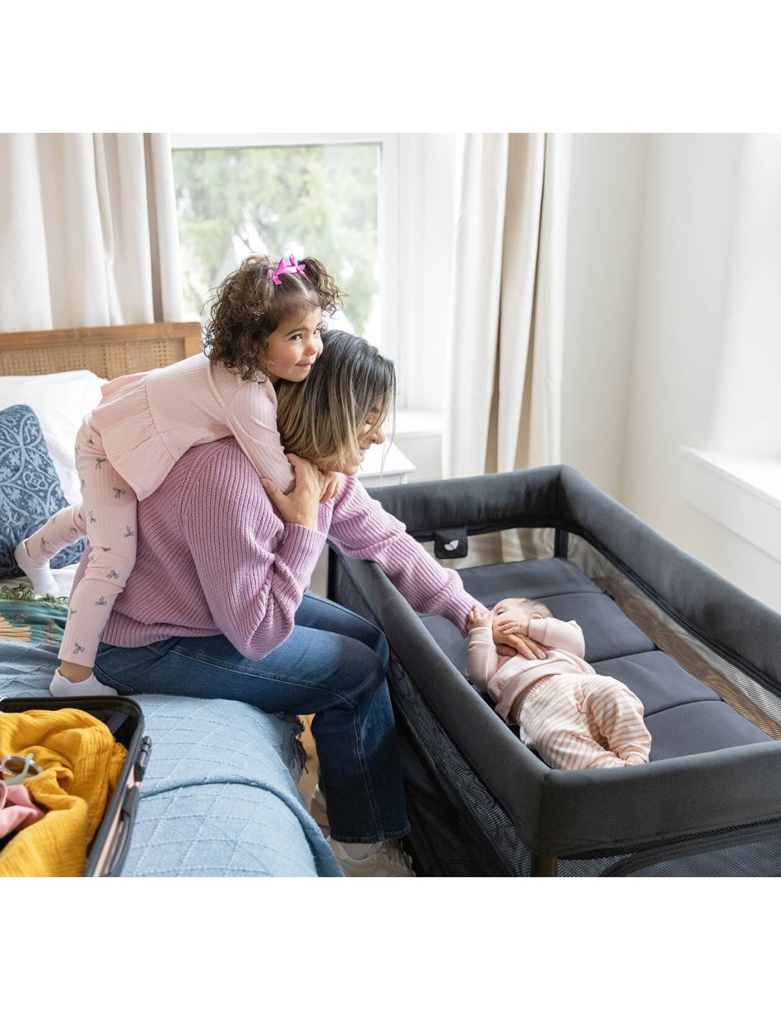 Con un solo gesto, il lettino da viaggio si richiude da culla o lettino in modo compatto, pronto a partire