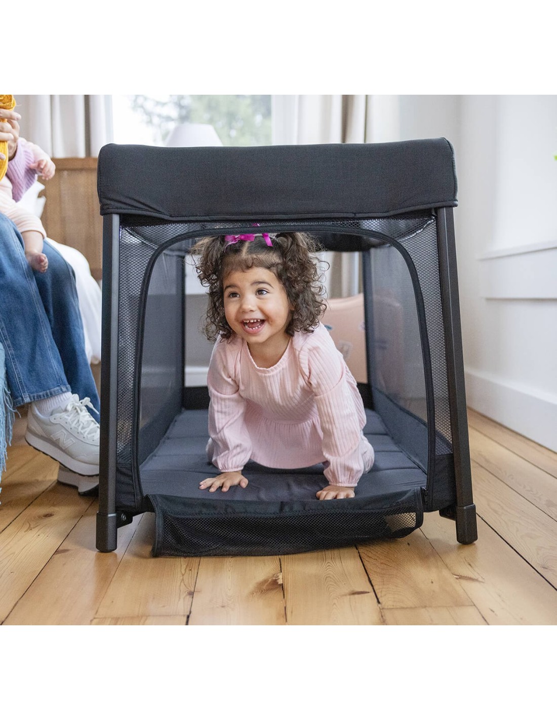 La zip rapida e scorrevole sul lato rende questo lettino da viaggio perfetto per i più piccoli, che possono entrare e uscire da soli, rendendo i momenti di gioco divertenti e facili per tutti.