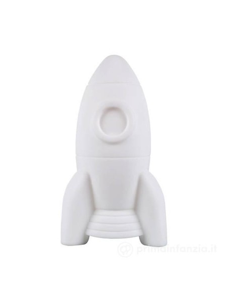 La Luce notturna ricaricabile a Led a forma di razzo di Flow Amsterdam cambia colore toccandola.