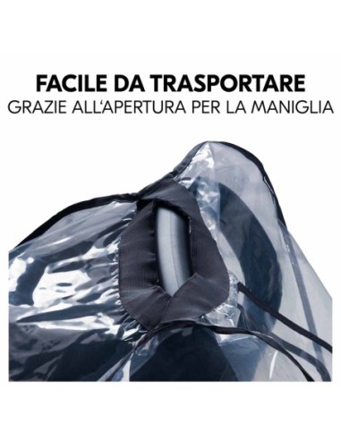 Grazie alla pratica apertura per la maniglia, è possibile trasportare il seggiolino auto con il parapioggia in modo facile e sicuro. Le finestre a rete sui lati garantiscono una buona circolazione dell'aria. La pratica finestra di visualizzazione consente di raggiungere il bambino in modo rapido e semplice senza dover rimuovere l'intera copertura. Se necessario, è possibile fissare la finestra aperta in alto grazie alla chiusura a strappo.