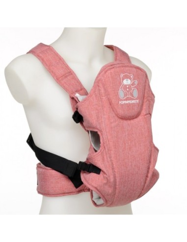 Il bimbo può essere rivolto fronte mamma o fronte strada. Ha un supporto per la schiena del bimbo con struttura termo modellata e riduttore per i primi mesi, mentre la cintura è regolabile con rinforzo lombare per il genitore.