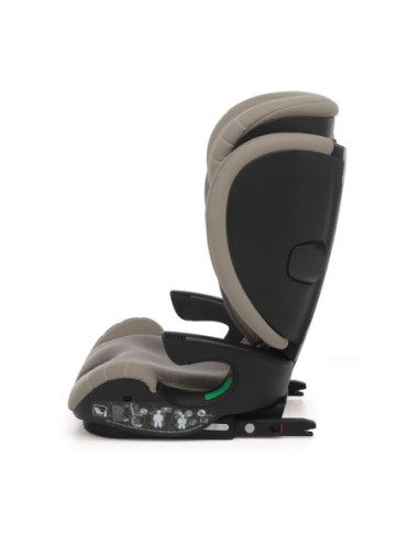 Lo schienale è inclinabile per adattarsi a qualsiasi sedile dell’auto, sicurezza dagli impatti laterali, imbottiture interne per maggiore comfort oltre a sedile e braccioli ergonomici. Il rivestimento è removibile e lavabile.