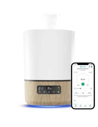 L'umidificatore Breathe contiene una tecnologia intelligente avanzata. Attraverso l'app Maxi-Cosi Connected Home verrai immediatamente informato di eventuali variazioni di temperatura o umidità nella nursery. Una gamma di sensori intelligenti consentono ai prodotti Connected Home di funzionare in piena autonomia quando necessario. Ad esempio, se l'umidificatore Breathe rileva che il livello di umidità della stanza è inferiore al minimo impostato, si accende automaticamente e inizia a regolare l'umidità nella nursery. Il tutto controllato tramite l'app Maxi-Cosi Connected Home o con comandi vocali tramite Alexa e Google Assistant.