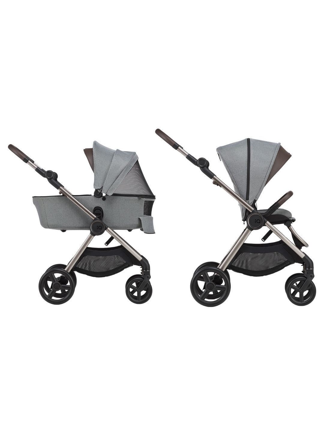IQ è caratterizzato da due sedute per seguire la crescita del bambino e trasformarlo in passeggino leggero. La prima seduta è omologata dalla nascita reversibile fronte mamma e fronte mondo, reclinabile fino alla posizione nanna. La seconda seduta è omologata dai 6 mesi fino ai 22 kg, uando il bambino cresce si consiglia di utilizzare la seconda seduta, più leggera.