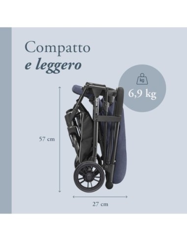 Il passeggino leggero e compatto, adatto fino a 17 kg. Il massimo della praticità per ogni genitore, si apre e si chiude con una sola mano e coccola il tuo bambino in tutte le uscite.