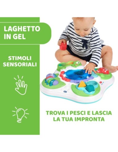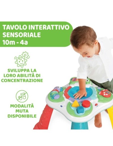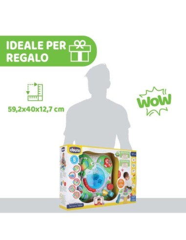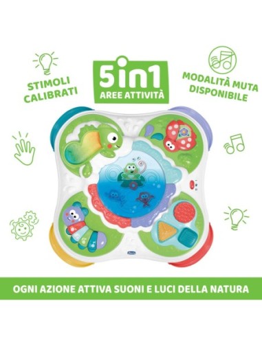 Il Tavolo Sensoriale Chicco è il centro interattivo della natura con attività elettroniche e manuali per allenare l’attenzione, i sensi e il gioco creativo