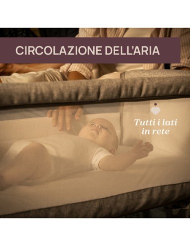 La presenza della rete su tutti i lati della culla garantisce la migliore circolazione dell'aria e permette di monitorare il bambino.