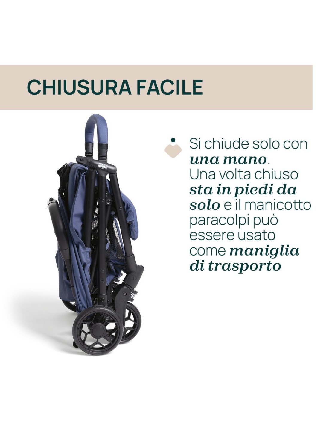 Dotato di chiusura rapida: chiudere il passeggino Urbino è molto semplice, basta una sola mano!