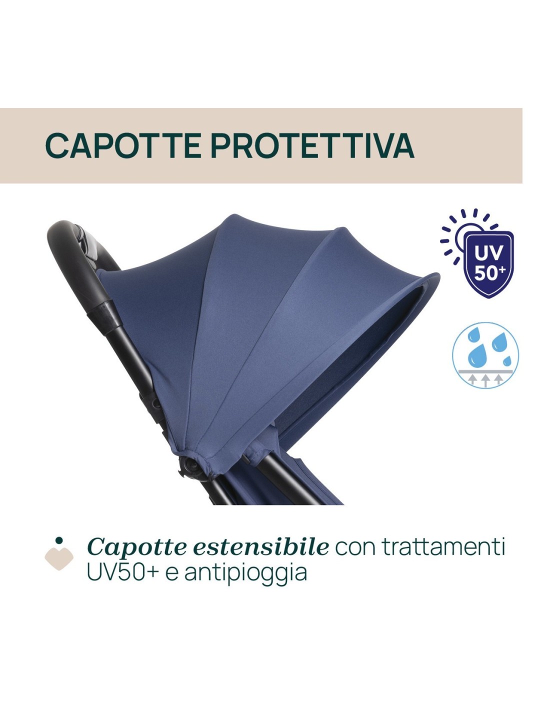 Comfort garantito: la seduta accogliente e la capotte parasole offrono al bambino protezione e relax.