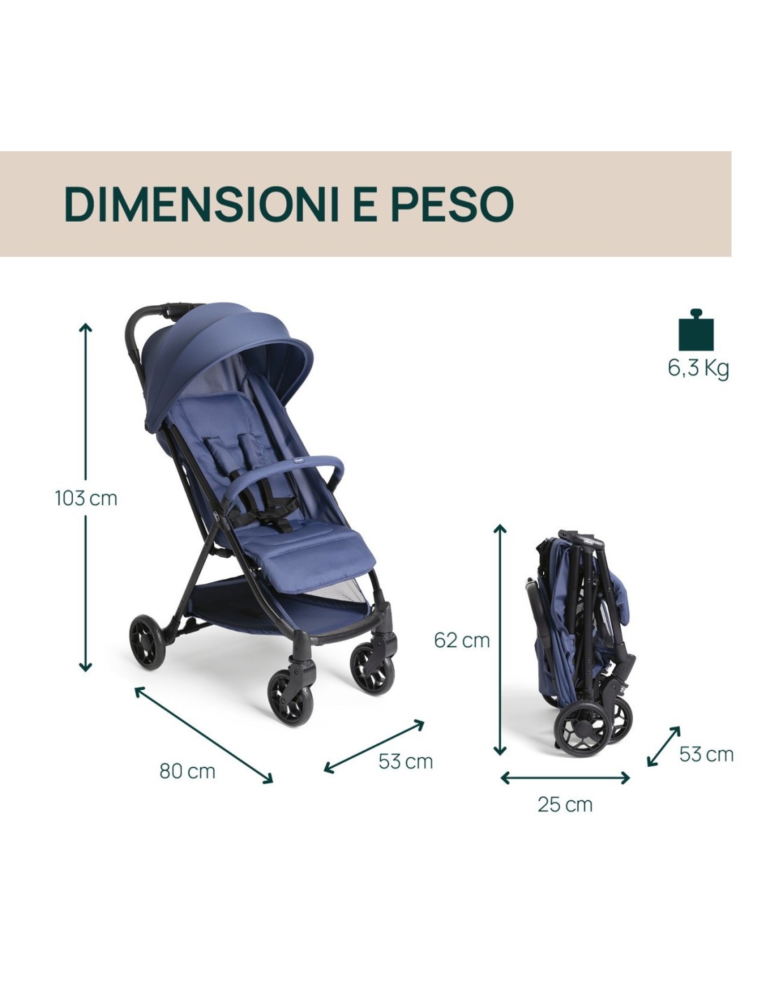 Facile da trasportare quando piegato: pesa solo 6,3 kg.