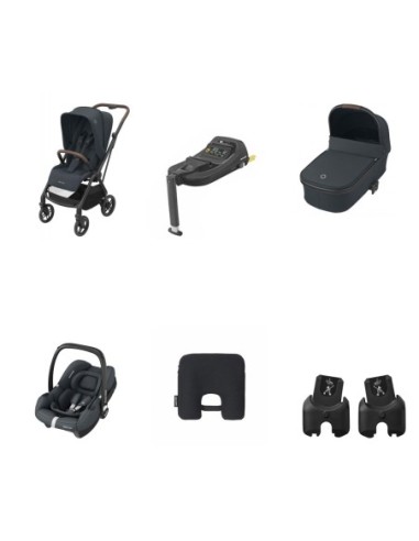 il bundle Maxi Cosi contiene il passeggino Leona 2 la Carrozzina Oria gli adattatori per seggiolino auto l'ovetto Cabriofix la base Cabriofix e dispositivo E-Safety