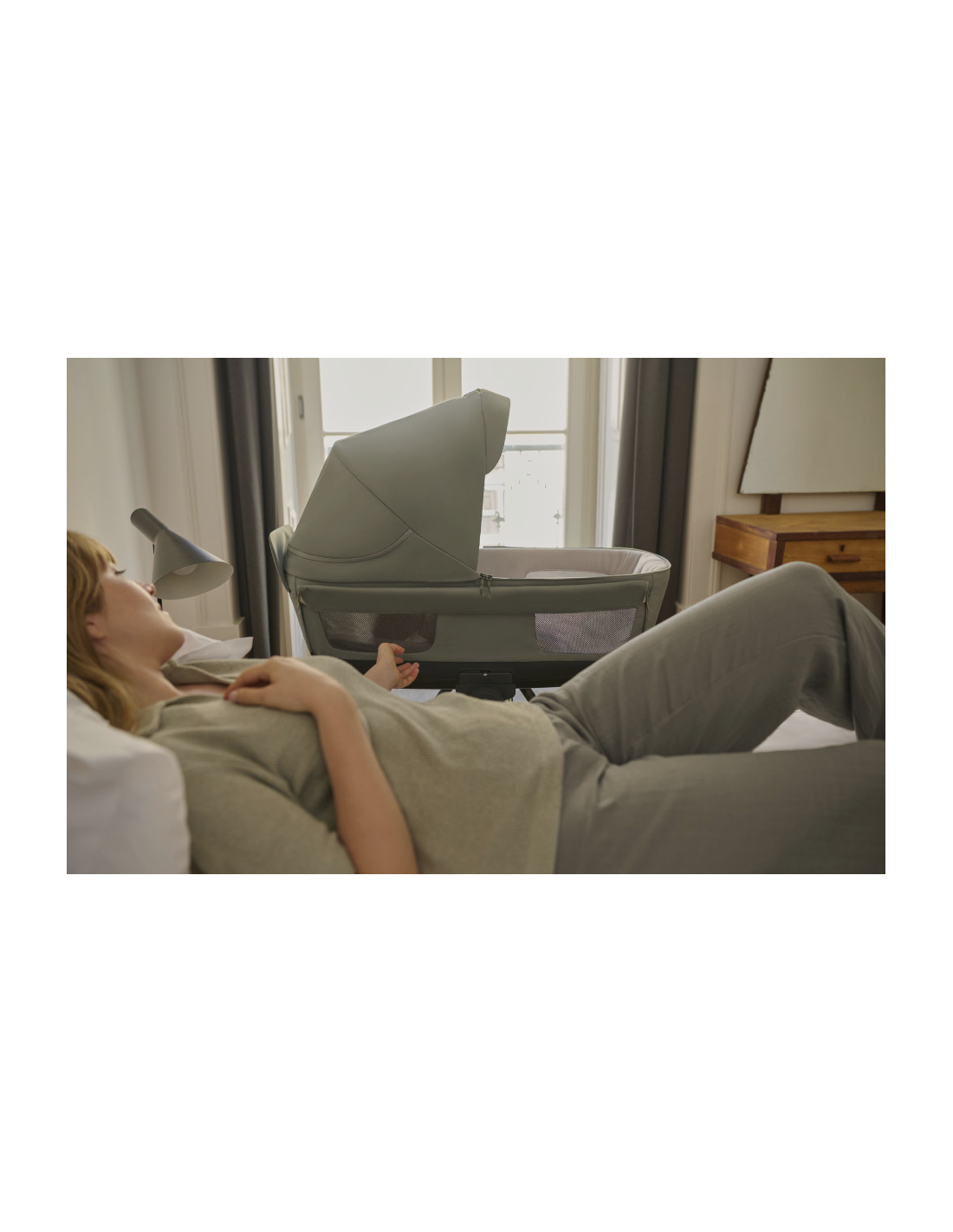 Si aggancia e si sgancia facilmente al telaio e allo Standup grazie al sistema “easy clip”. Il colore verde segnala quando la culla è correttamente agganciata al telaio.