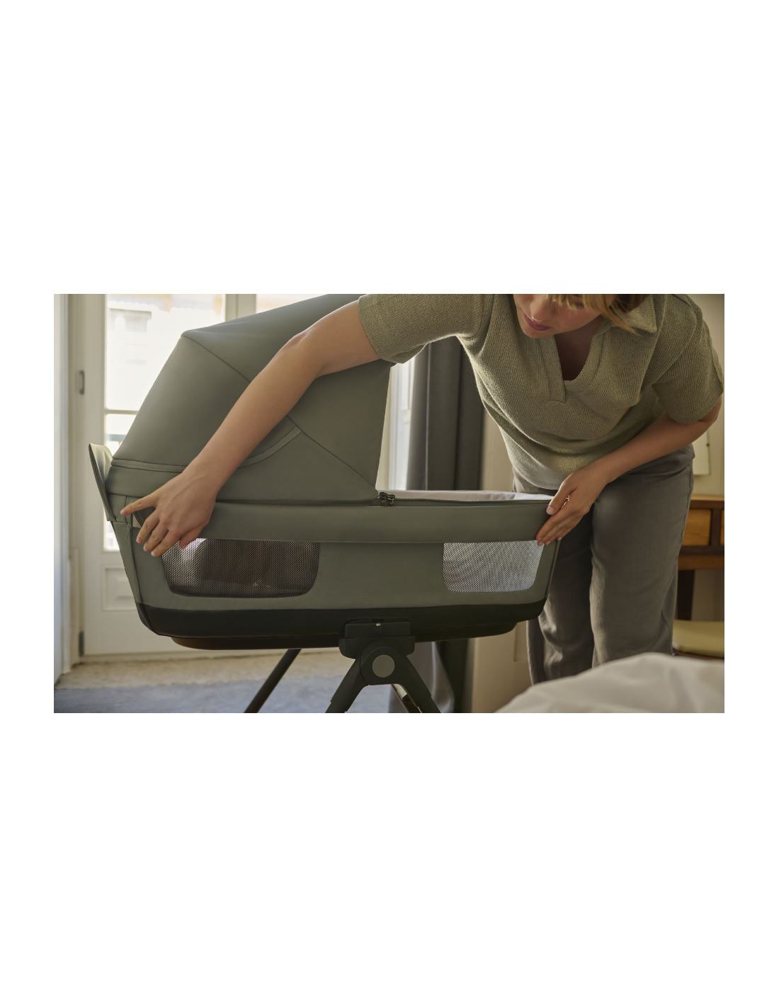 Si aggancia e si sgancia facilmente al telaio e allo Standup grazie al sistema “easy clip”. Il colore verde segnala quando la culla è correttamente agganciata al telaio.