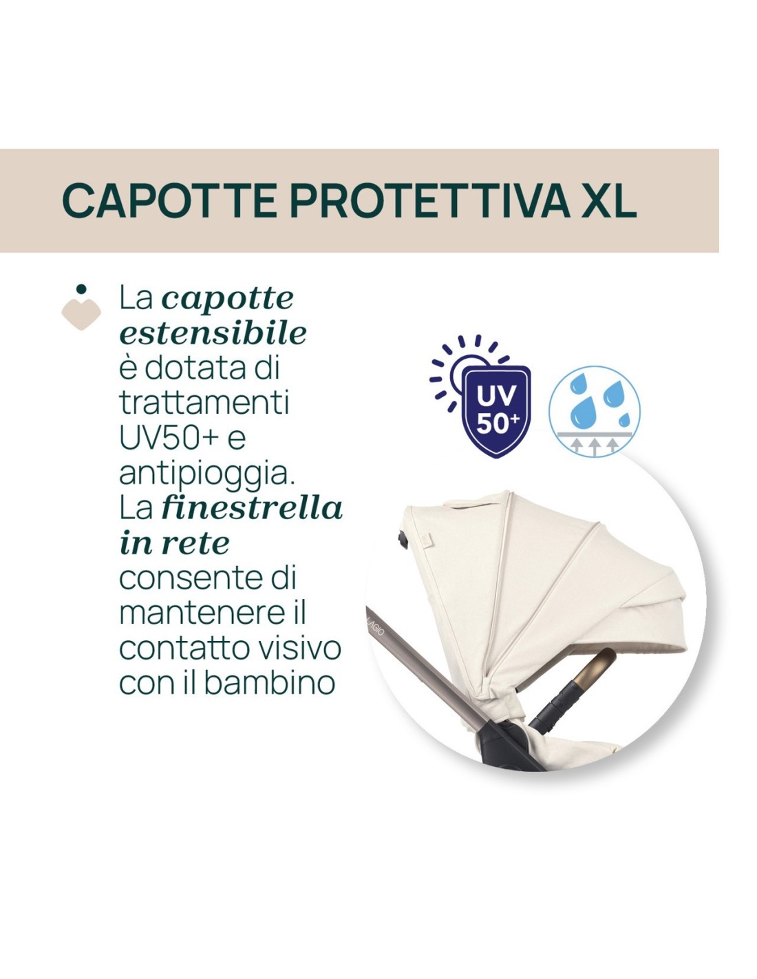 Per il corretto sviluppo fisiologico del neonato è importante garantirgli la posizione sdraiata ed orizzontale il più a lungo possibile. Grazie alle sue generose dimensioni interne (79 x 37 cm) potrà stare comodamente sdraiato per almeno 6 mesi, anche quando è avvolto in un sacco invernale o quando indossa una tutina imbottita.