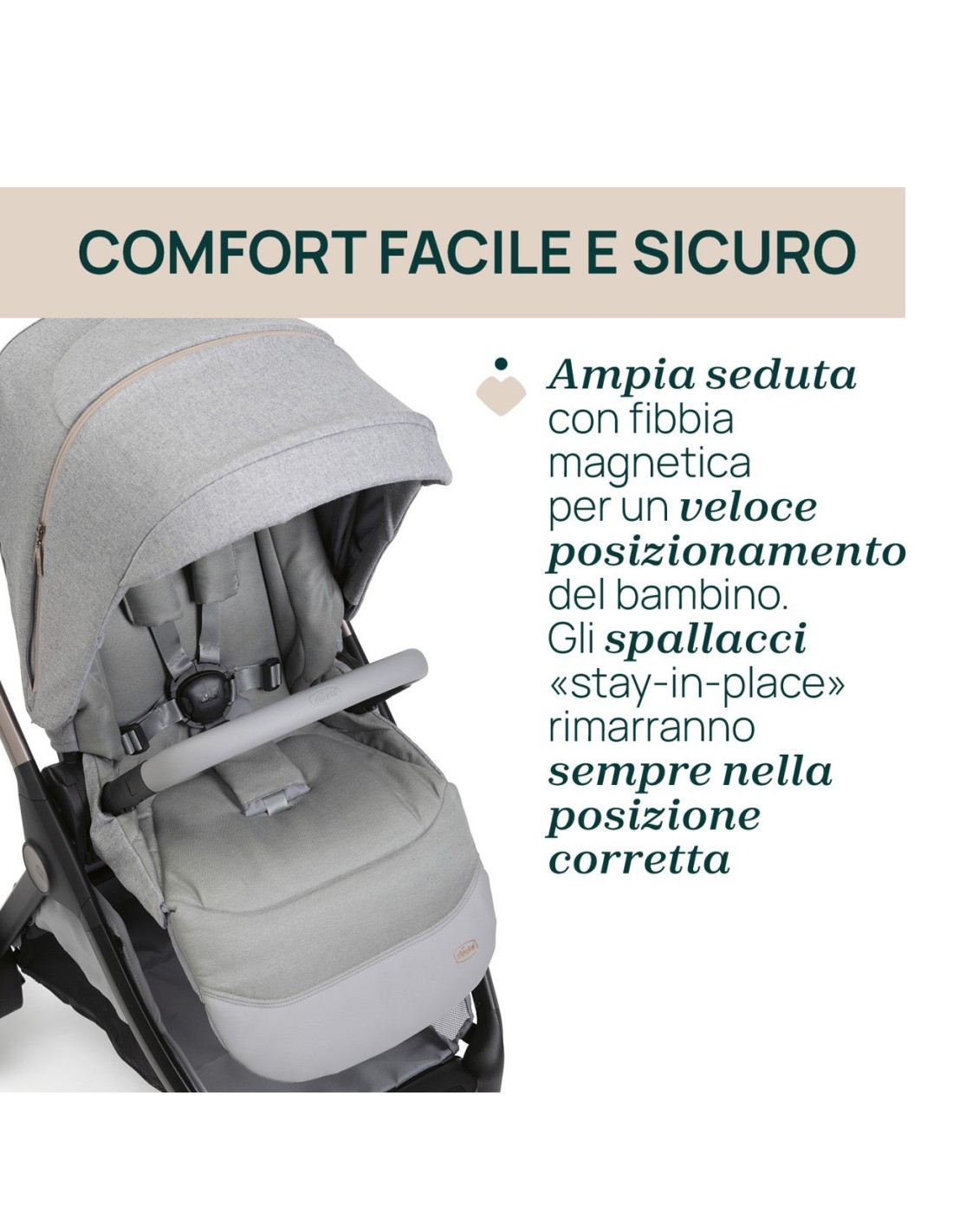 Eccezionalmente confortevole per il bambino, facilissimo da usare per i genitori e curato nei minimi dettagli.