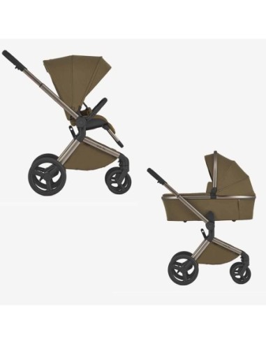 Sia la navicella che l' seduta sono dotate di un'ampia capottina con una sezione aggiuntiva, che offre una copertura completa e protezione per il tuo bambino da condizioni meteorologiche inaspettate.