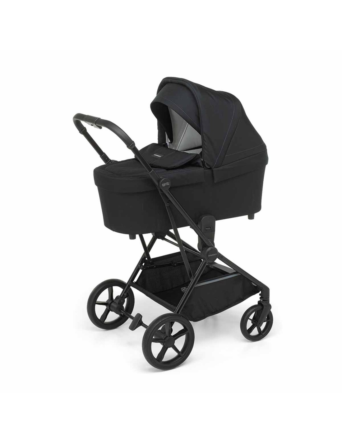 Il telaio di Spritz si chiude in modo automatico e semplice con una mano sola stando in piedi da solo, si trasporta facilmente e, nella versione passeggino, si chiude sia fronte mamma sia fronte mondo.