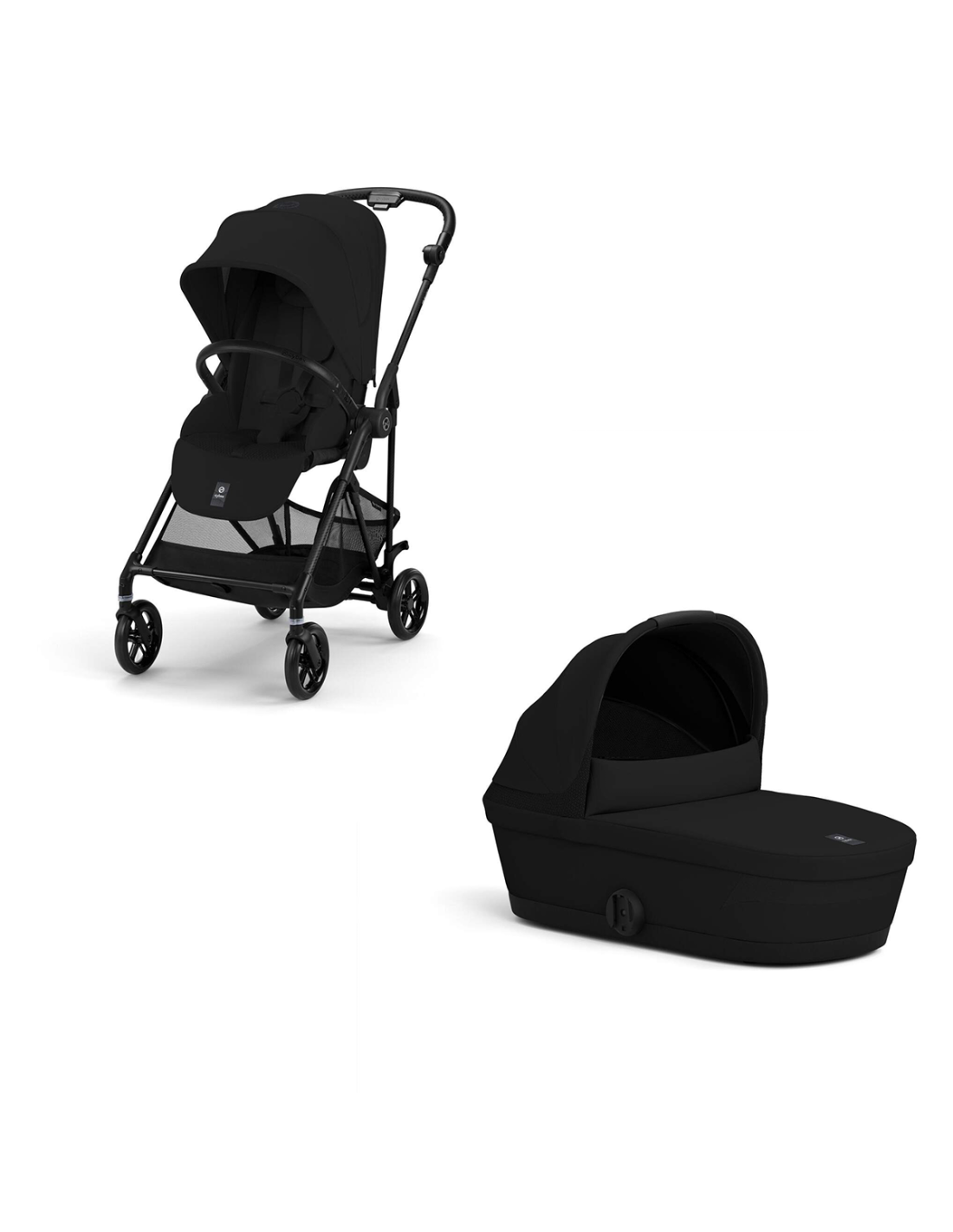 Duo di Cybex che comprende il passeggino Melio Carbon 2025 e la navicella Melio.